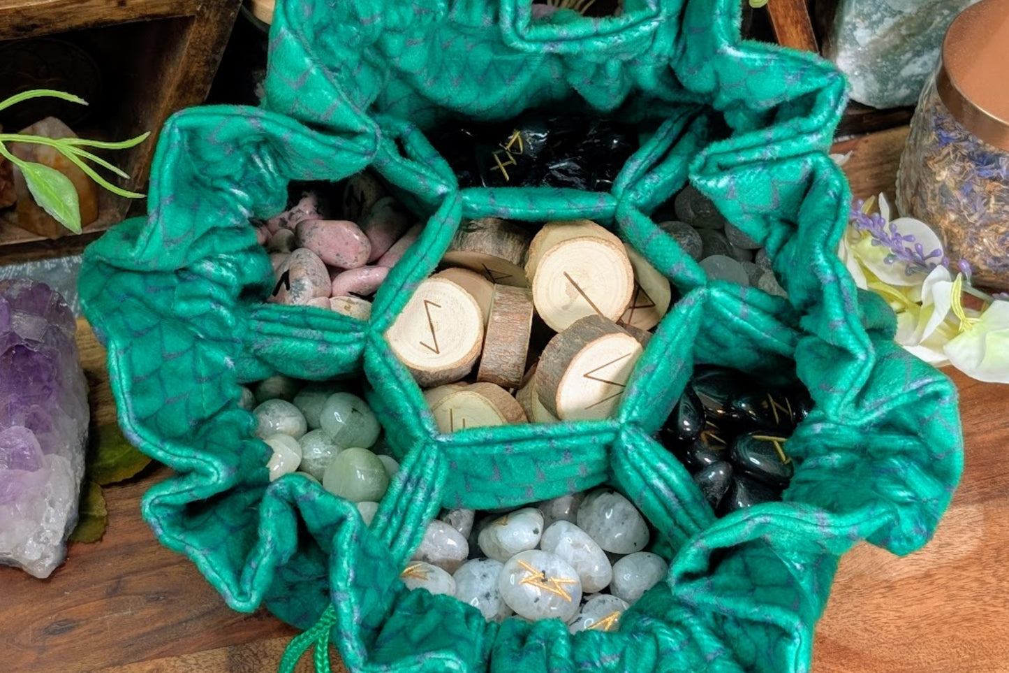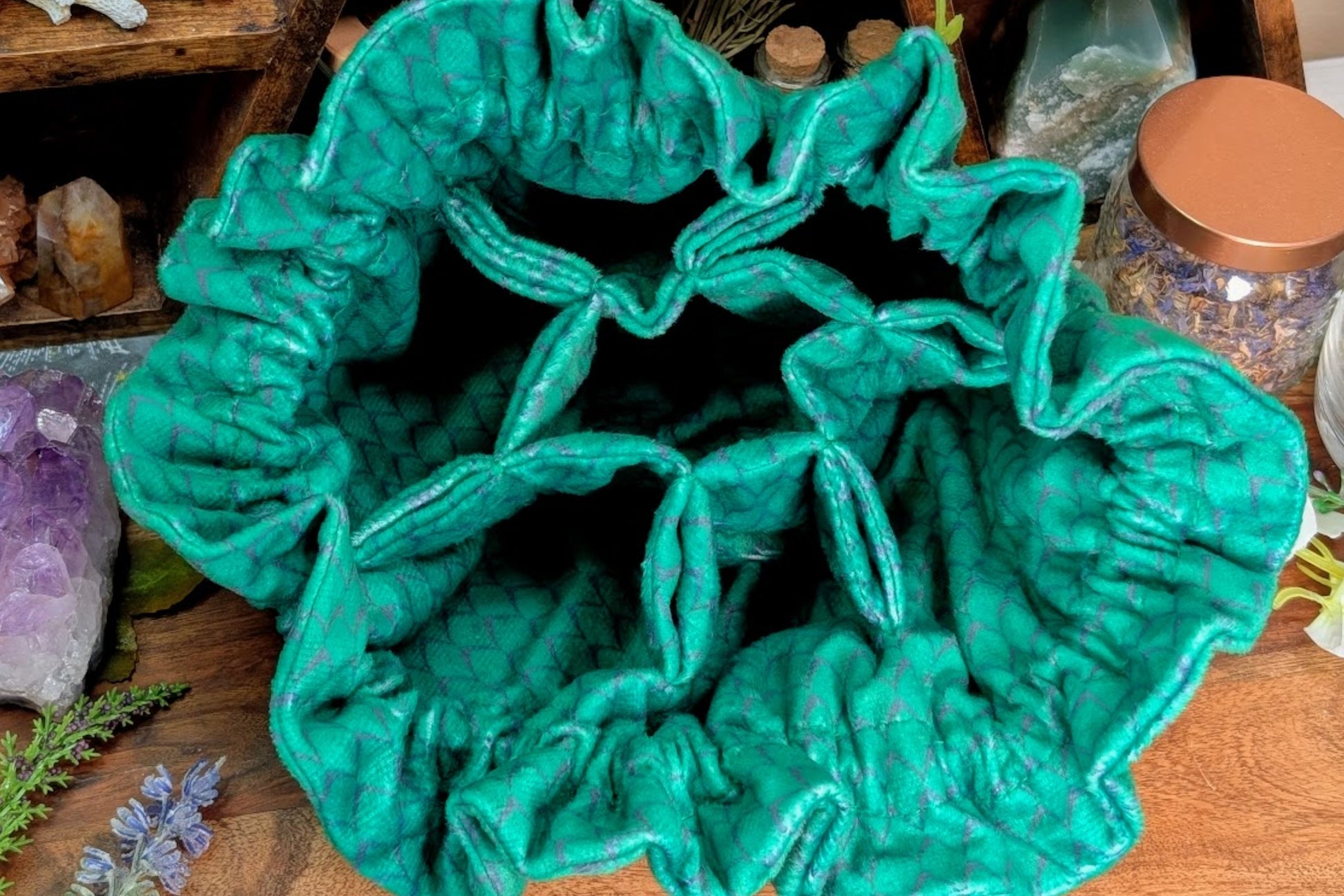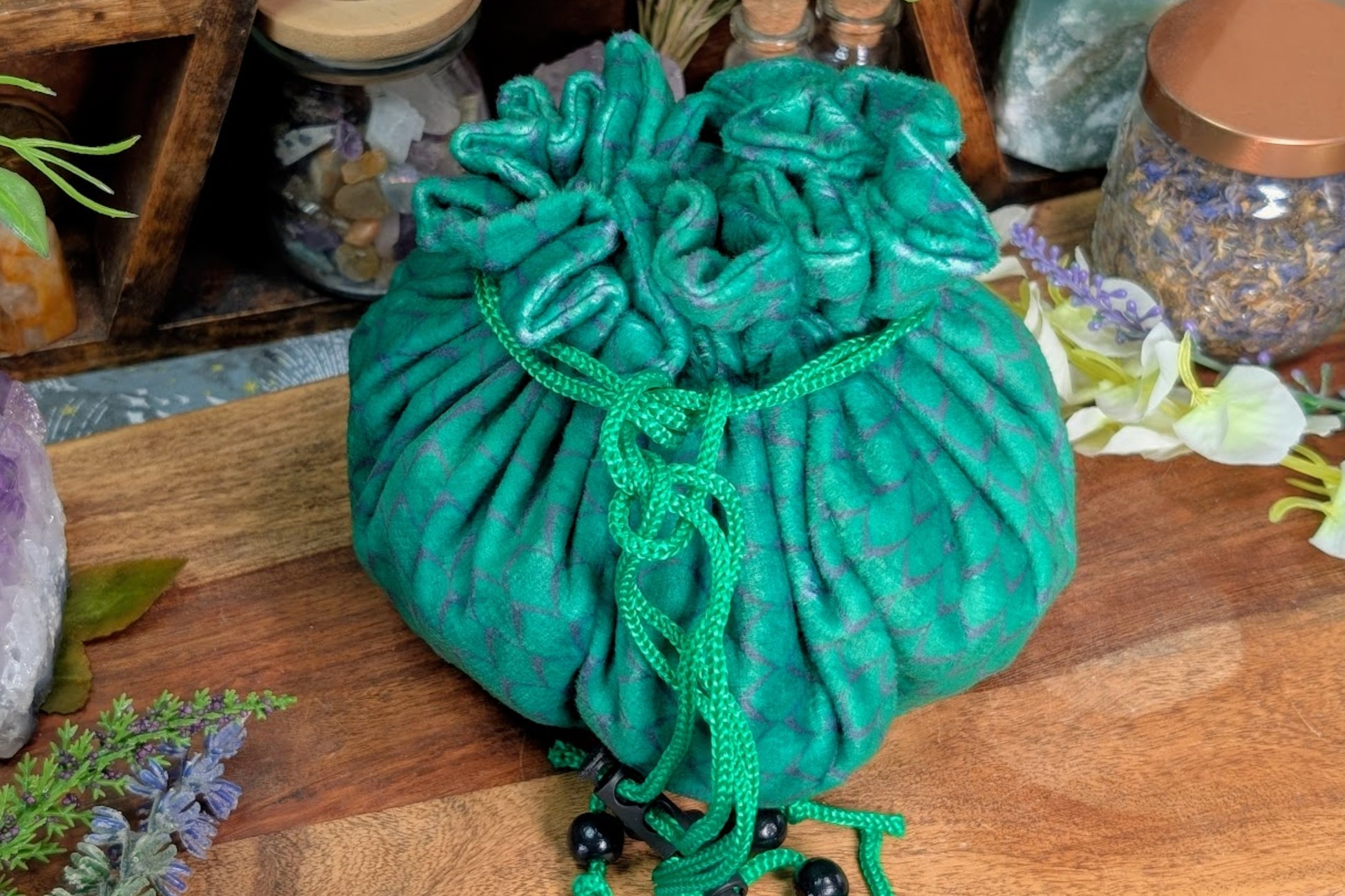 Velvet Drawstring Compartment Bag - Green Dragon Scale